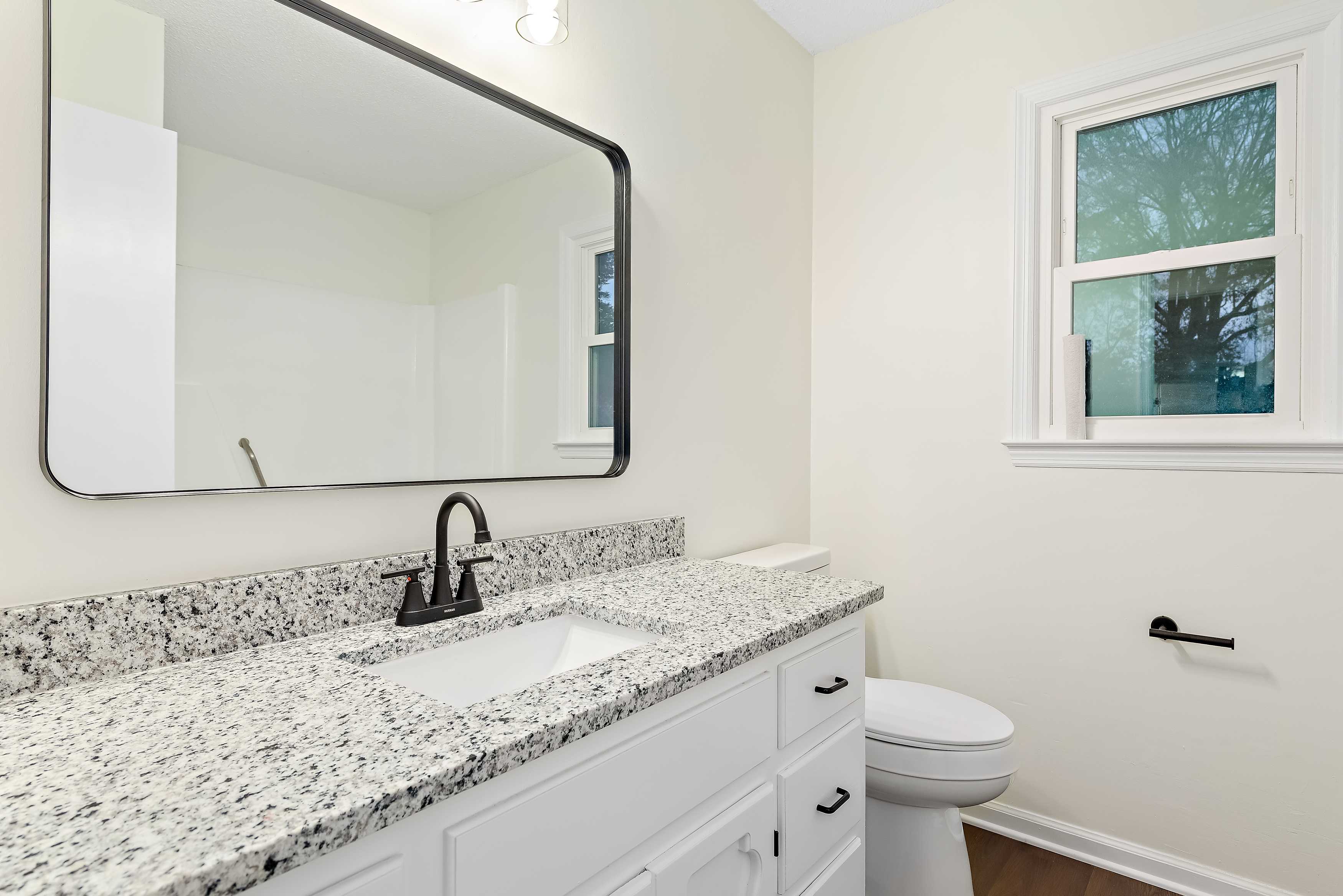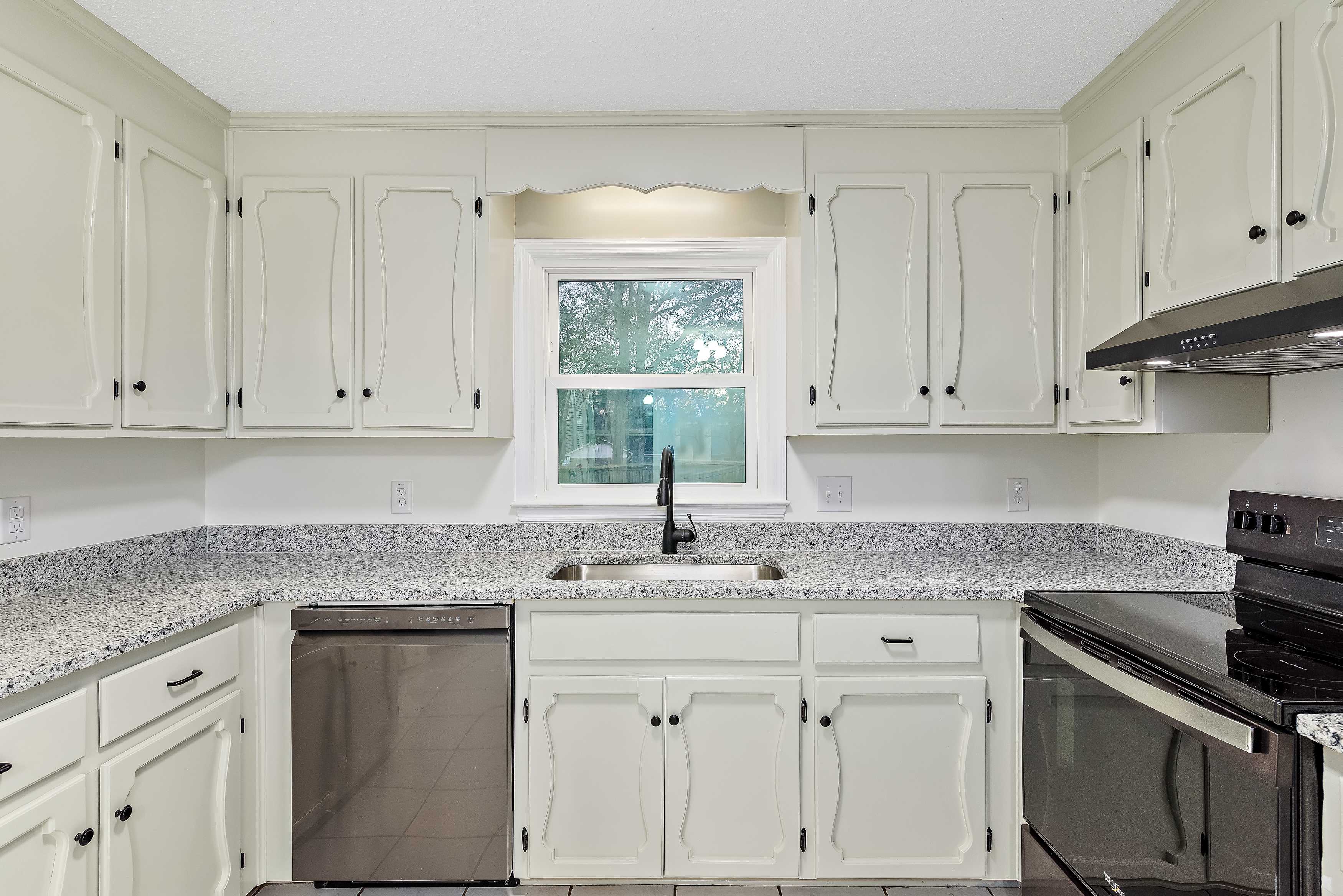 Warm natural light, fresh paint, and new carpet create a welcoming feel throughout, while the kitchen shines with granite countertops, painted cabinetry, and new stainless stove + dishwasher.